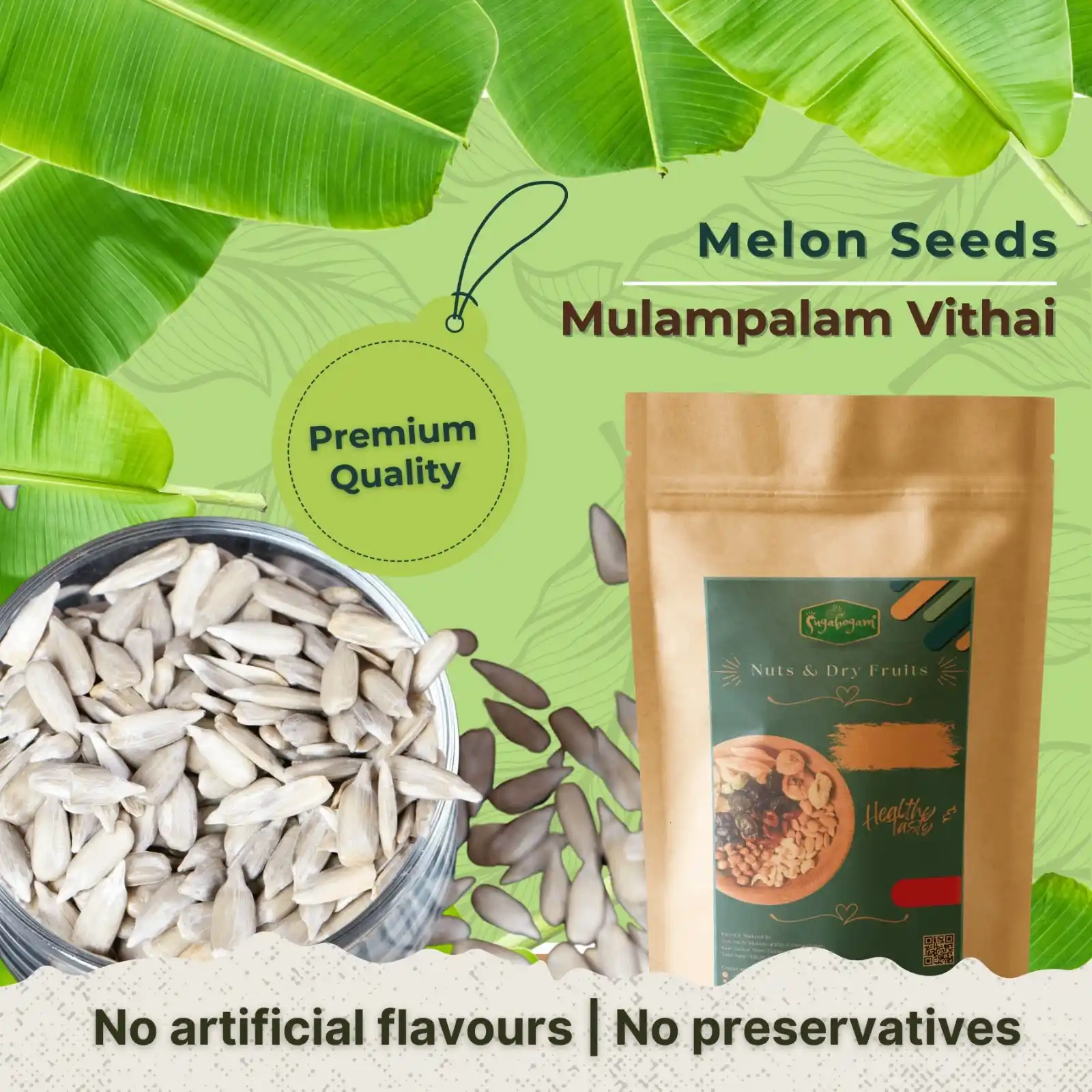 Nutrient-Rich: Dried melon seeds provide essential nutrients, including protein, healthy fats, vitamins (such as B vitamins and vitamin E), and minerals (such as magnesium, zinc, and iron).