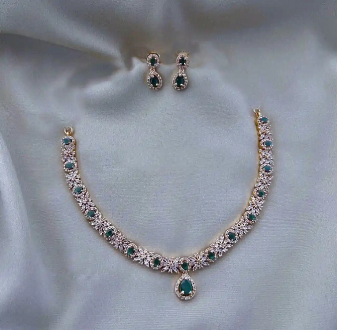 Immerse yourself in luxury with our premium Quality CZ Stone necklace Set, a stunning example of sophisticated design and elegance. This Set features a meticulously crafted necklace adorned with brilliant CZ Stones that capture and reflect light, creating a dazzling effect. The weightless design ensures comfortable wear throughout the day, while the fashion-forward, Fancy detailing adds a touch of modern glamour. The necklace is complemented by matching Ear RIngs that perfectly harmonize with the Set, making it ideal for both special occasions and everyday elegance. The intricate craftsmanship and high-Quality materials come together to offer a piece that is both timeless and contemporary, elevating your style with a refined and radiant allure.